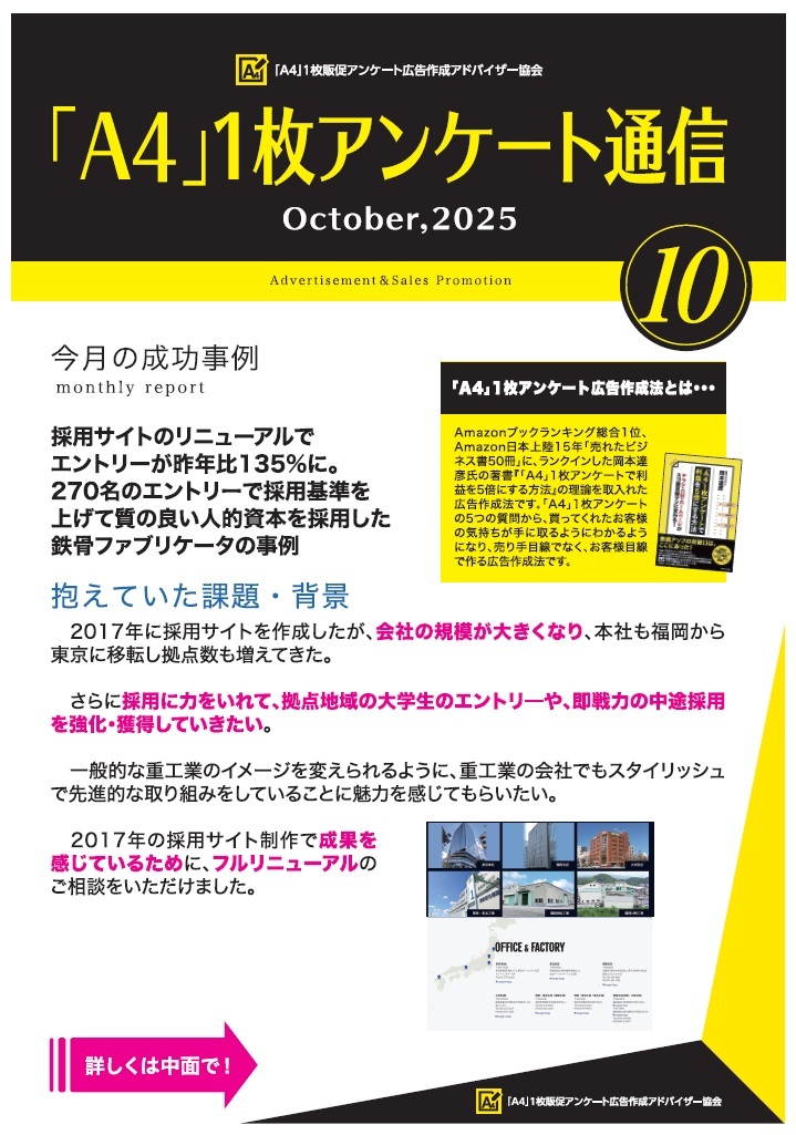「A4」1枚アンケート通信2025年10月号が完成しました!